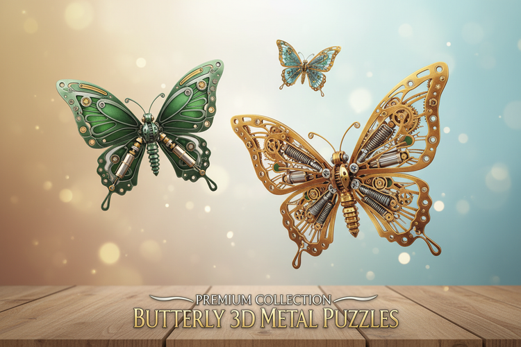 BLDBの精密3D金属パズル蝶コレクション。スチームパンクスタイルの機械的な美しさと、蝶の優雅な造形が融合した芸術作品です。