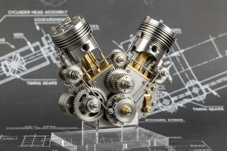 精密なエンジンをモチーフにした3D金属パズル。V型エンジン、バイクエンジンなど、可動ギアでメカニズムを楽しめるモデル。