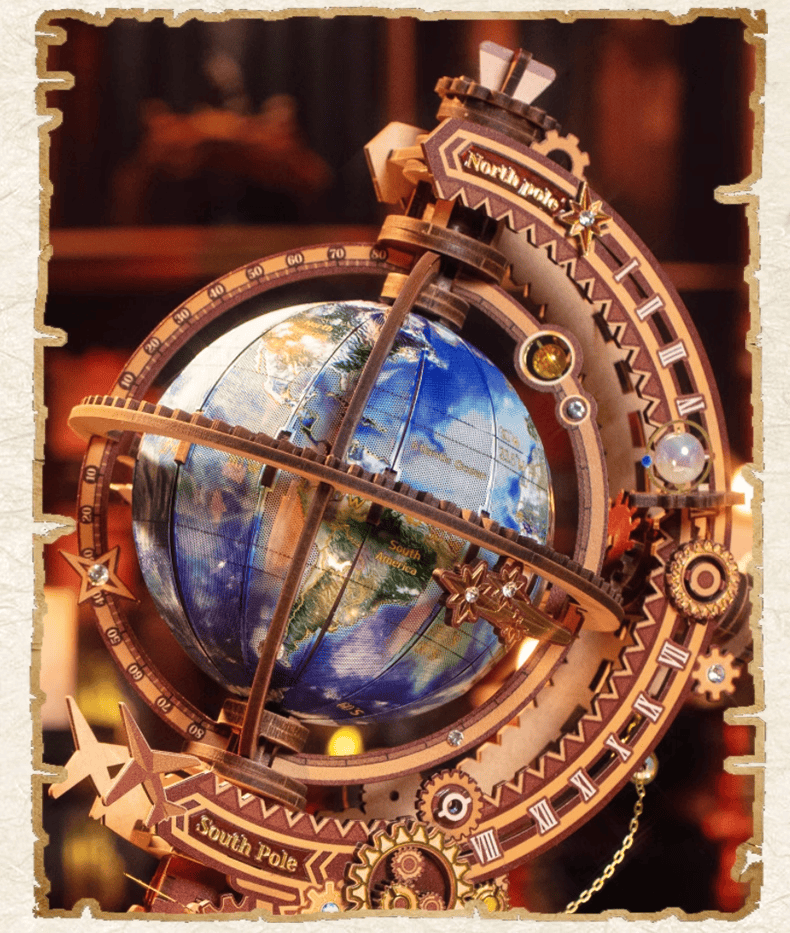 七大陸と四大洋が織りなす立体構造は、家にいながら世界を巡る旅へと誘います。さあ、探検家となって、没入感あふれる地球の夢幻旅行を始めましょう。