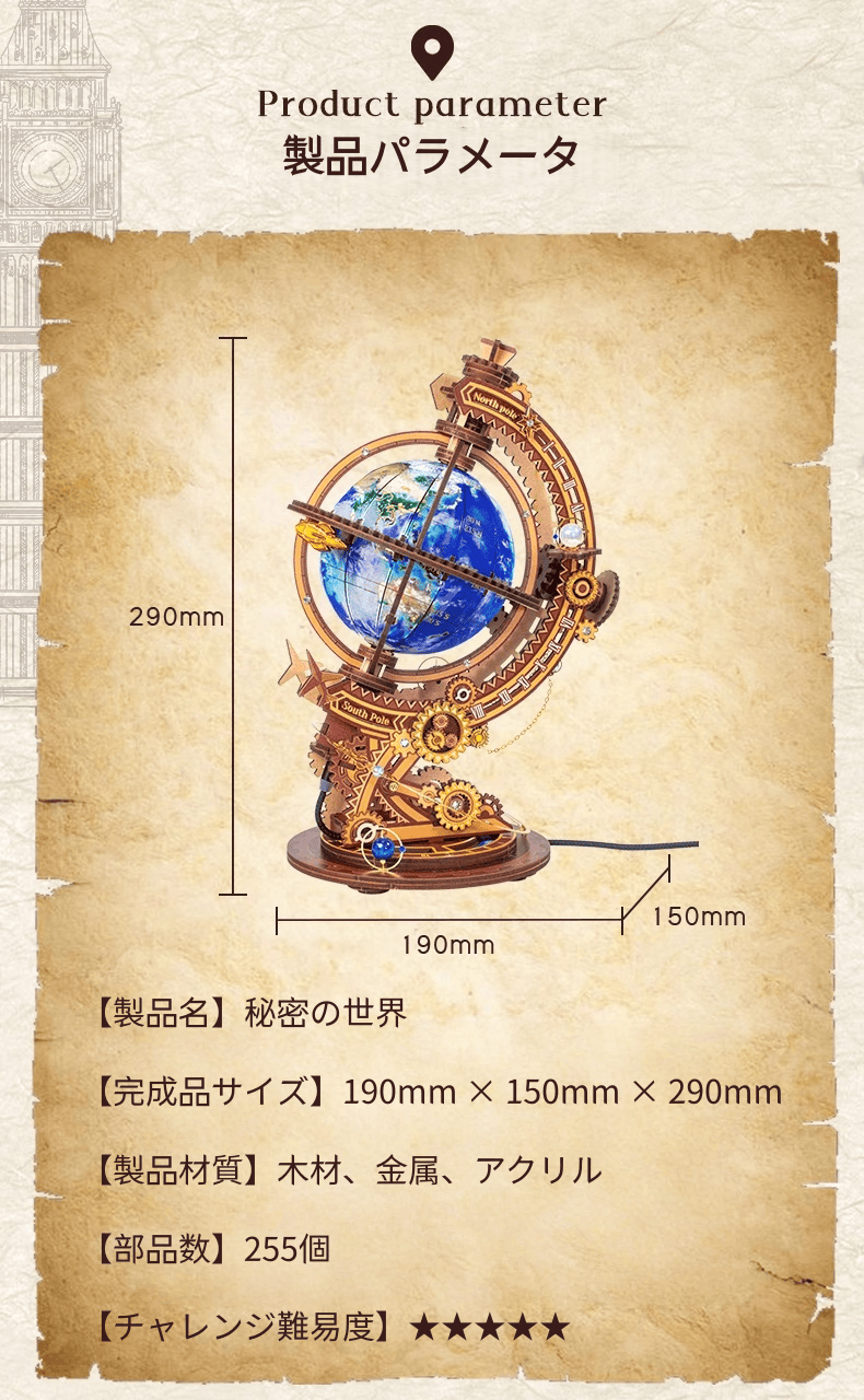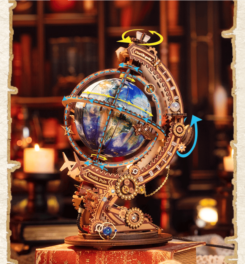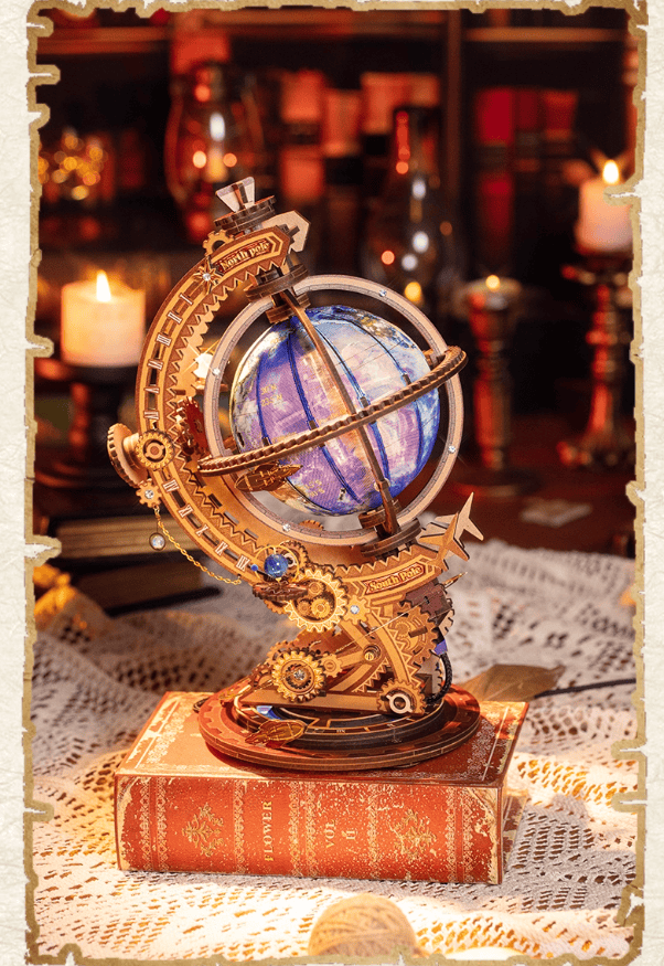 スチームパンクメカニカル 秘密の世界 地球儀ナイトライト 3D立体パズル 金属モデル