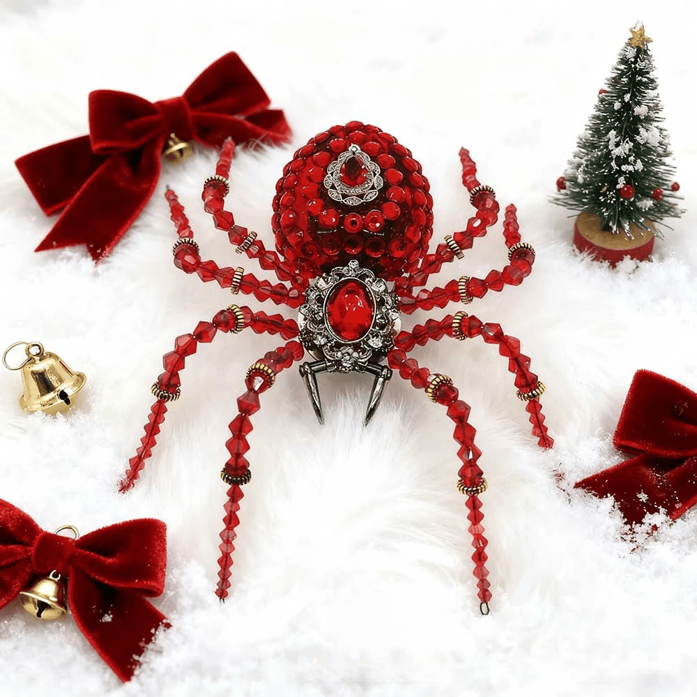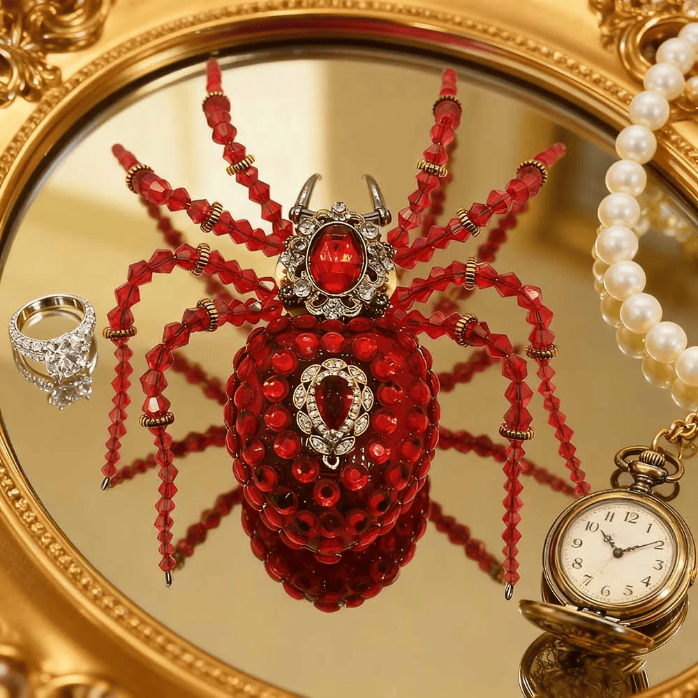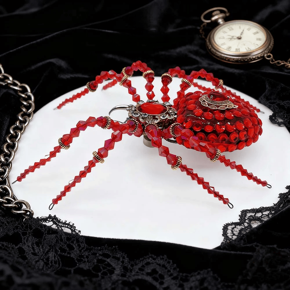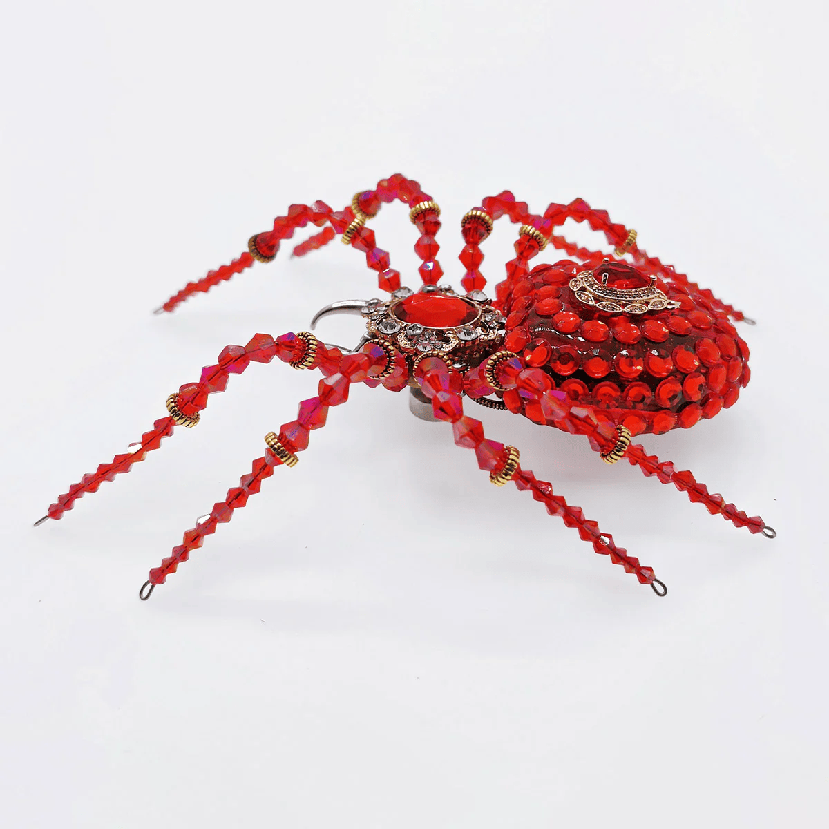 目を引くクモのデザイン:鮮やかな赤いクリスタルで作られた印象的なクモのシルエットに、繊細な金属パーツや宝石風装飾を組み合わせた、他にはないデザイン。鮮烈な色彩と光沢が、デスクや飾り棚の主役となり、空間にエレガントな雰囲気をもたらします。