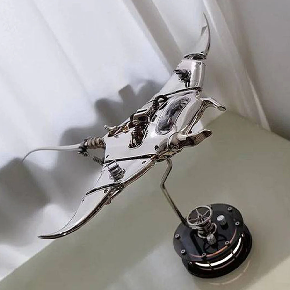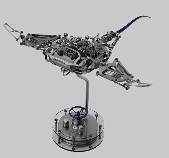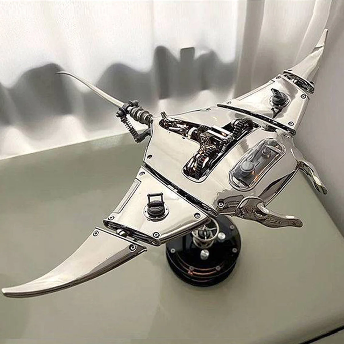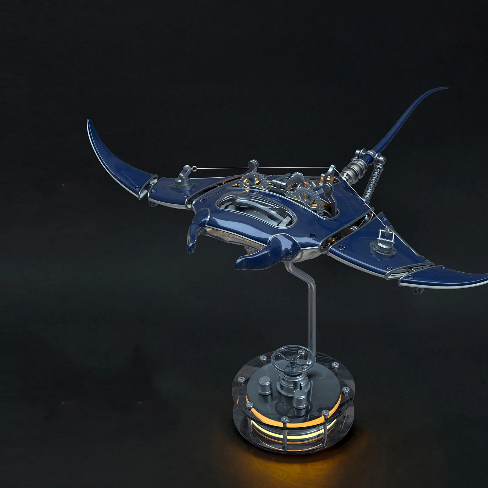 이것은 원래 모브라의 우아함과 아름다움에 영감을 얻은 스케일 모델, 기계식 모브라 만타 레이키네틱 스컬프처입니다. 언급됩니다. 때때로 웅장한 방법으로 뛰어 내리는 경향이 있기 때문에 모브라레이는 전 세계의 따뜻한 바다에서 서식합니다. 17피트로 성장하고 작은 물고기와 플랑크톤을 먹는다. 물고기에서 가장 큰 뇌를 가지고 있습니다.이 만타레이는 집단을 형성하고 물 표면에서 약 2m 높이까지 하늘로 튀어 나온 다음 물로 돌아갑니다. , 물을 통해 비행하는 움직임을 모방합니다. 하는 것이 얼마나 복잡했는지 상상해 보십시오. 흔들림의 속도와 조명의 밝기를 조정하는 것이 더욱 흥미롭습니다.
