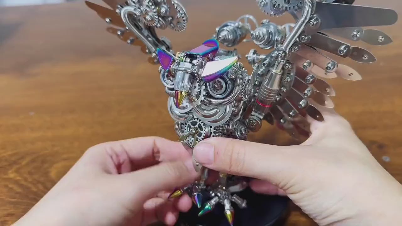 蒸汽朋克风格猫头鹰带护目镜 DIY 3D 金属动物模型套件,具有挑战性的拼图