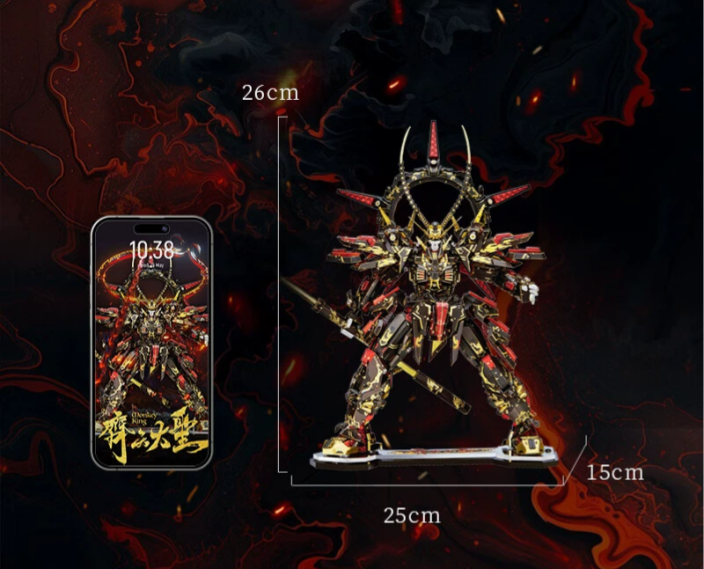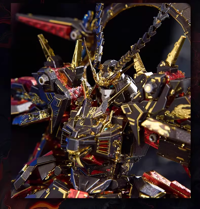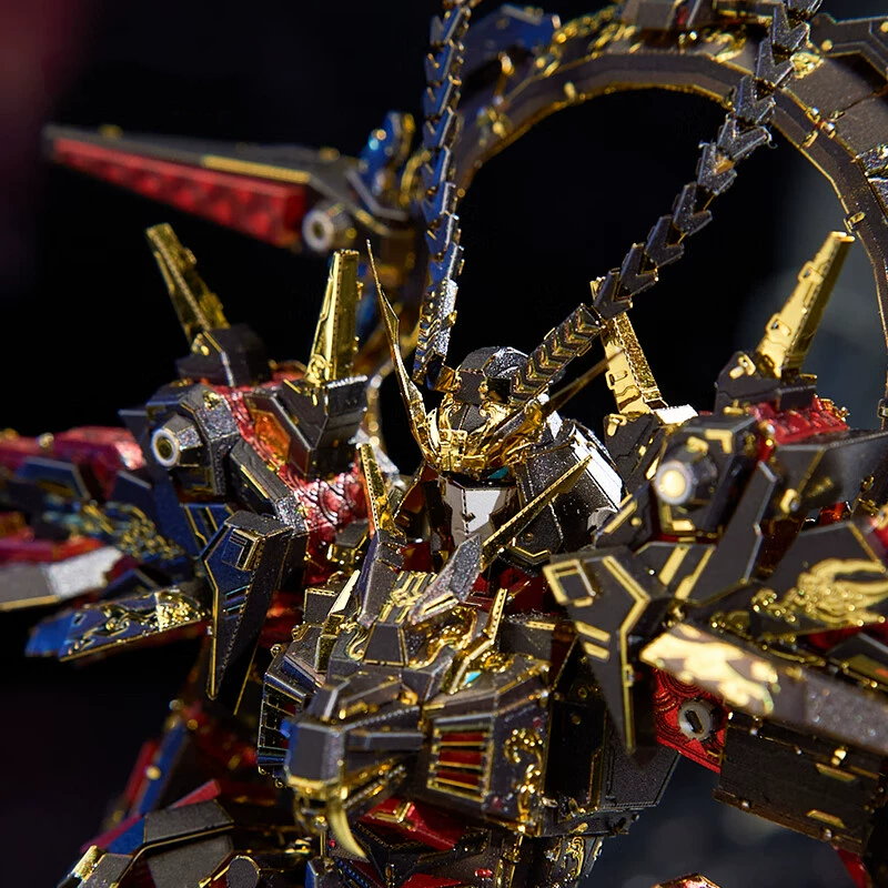 ・フルメタル構造 、 ハードコア工業スタイル:全体を金属で構成し、冷たい金属光沢と露出したネジ、ギア、油圧構造風のディテールが特徴。サイバーパンクに着想を得た無骨な工業美が、圧倒的な存在感を放ちます。